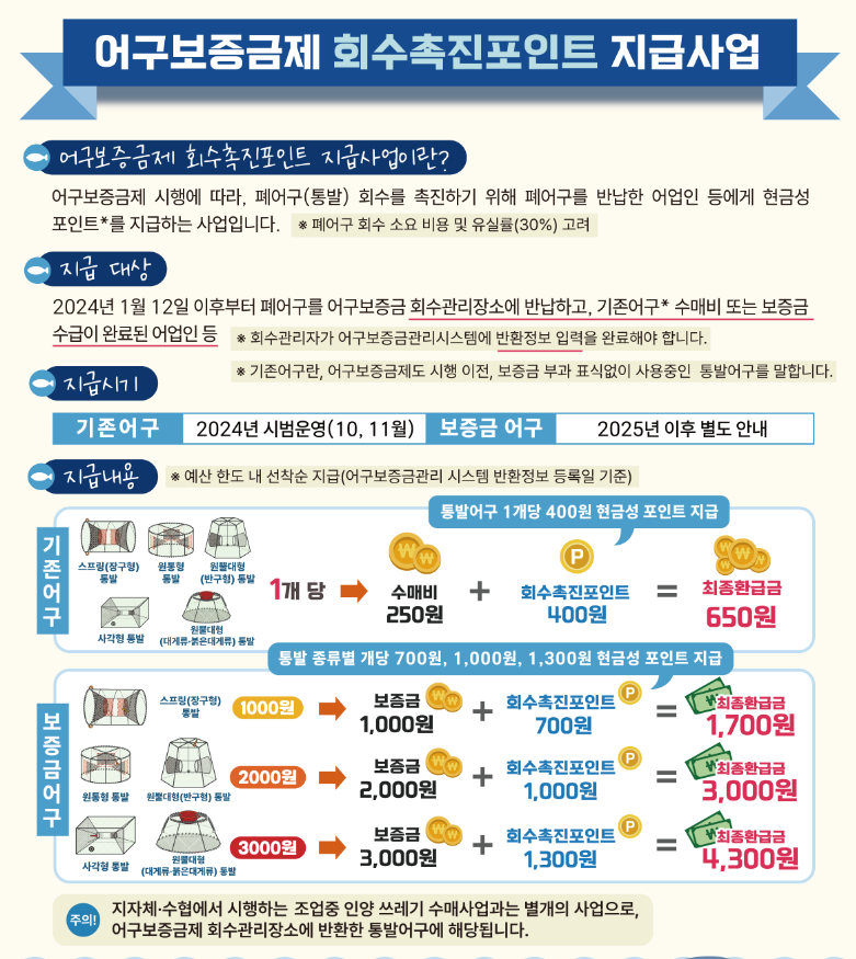 어구보증금제도 위반 신고하면 최대 30만 원… 어업인엔 폐어구 반납 시 포인트 추가 지급